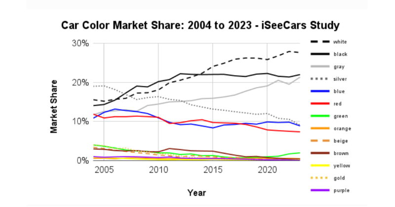 Last year, a study found that cars are steadily getting less colourful. In the US, around 80% of cars are now black, white, gray, or silver, up from 60% in 2004. This trend has been attributed to cost savings and consumer preferences. Whatever the reasons, the result is hard to deny: a big part of daily life isn’t as colourful as it used to be.