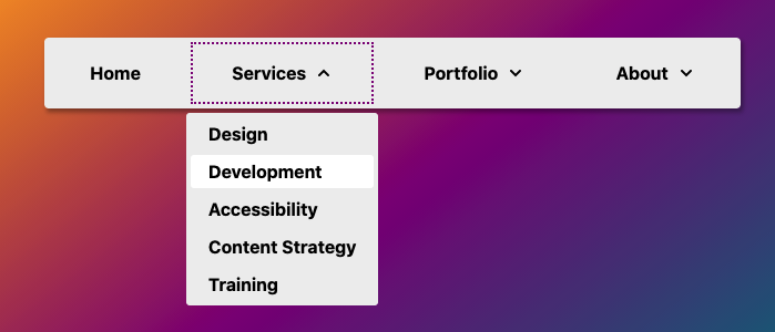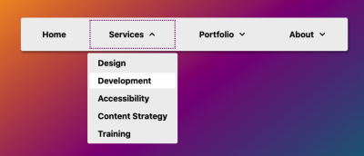 In his article, Mark goes into fine details of how to build an accessible click menu, along with useful pointers and references from his research. The idea is to start building the menu as a CSS-only hover menu that uses li:hover > ul and li:focus-within > ul to show the submenus. Then, we use JavaScript to create the <button> elements, set the aria attributes, and add the event handlers. The final result is available as a code example on CodePen and as a GitHub repo. This should be a good starting point for your menu as well.