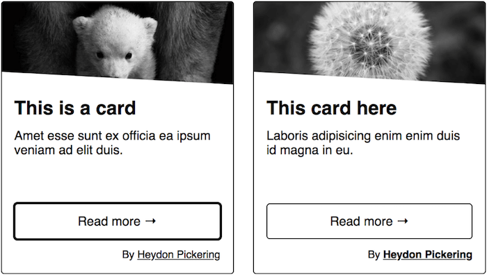 Cards offer a lot of advantages. They work well on mobile, provide large click areas, and the fact that they can be stacked both horizontally and vertically makes a lot of layout decisions easier. However, there’s no accessibility standard to follow, no <card> element or an ARIA design pattern. Instead, the potential accessibility barriers you might encounter depend on the card’s purpose and content. In his collection of inclusive components, Heydon Pickering looks into a few permutations of a simple card component and how to keep the balance between sound HTML structure and ergonomic interaction.