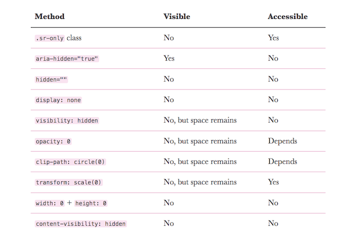 Sara covers the different techniques for hiding elements, how each of them affects the accessibility of the content, and how to visually hide them, so they can be replaced with a more styleable alternative: the SVG.