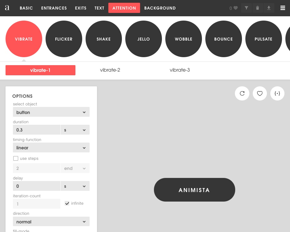 It’s quite easy to tell a difference between an animation that seems to be a bit off, and an animation that is done just well. But adjusting the keyframes animations or transitions manually can be quite time-consuming. Animista provides a library of animations and transitions that you can use out of the box. There are plenty of presets for entrances and exits, text highlights, button actions and background effects. Once you’ve defined an animation you can copy-paste the CSS snippet of the animation, along with the code generated by Autoprefixer.