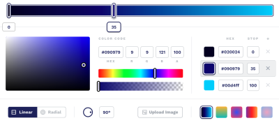 Powered by color gradient algorithms, the generator creates well-balanced gradients based on a color you select. There are four different styles of gradients that go from subtle to a mother-of-pearl effect and an intense, deep color gradient. You can adjust the gradient with sliders and, once you’re happy with the result, copy-paste the generated CSS code to use it in your project.