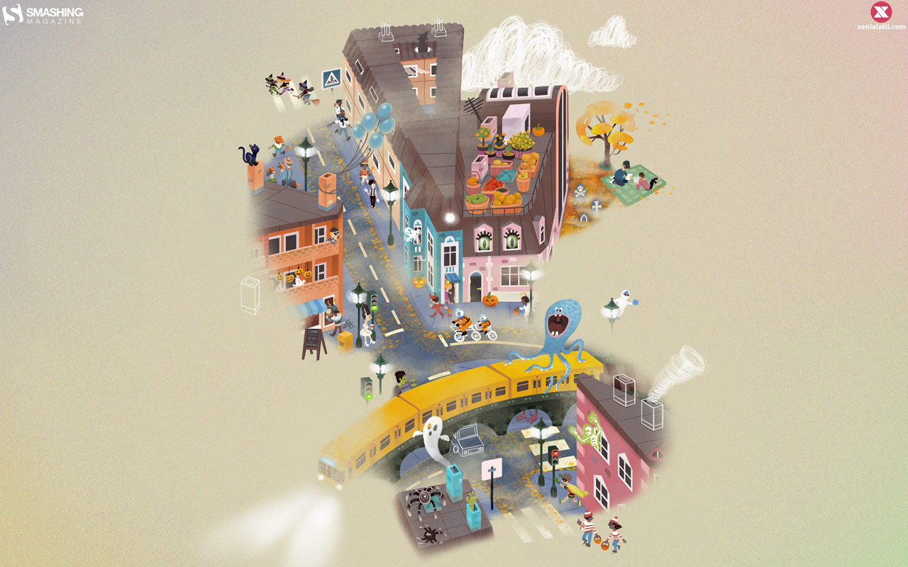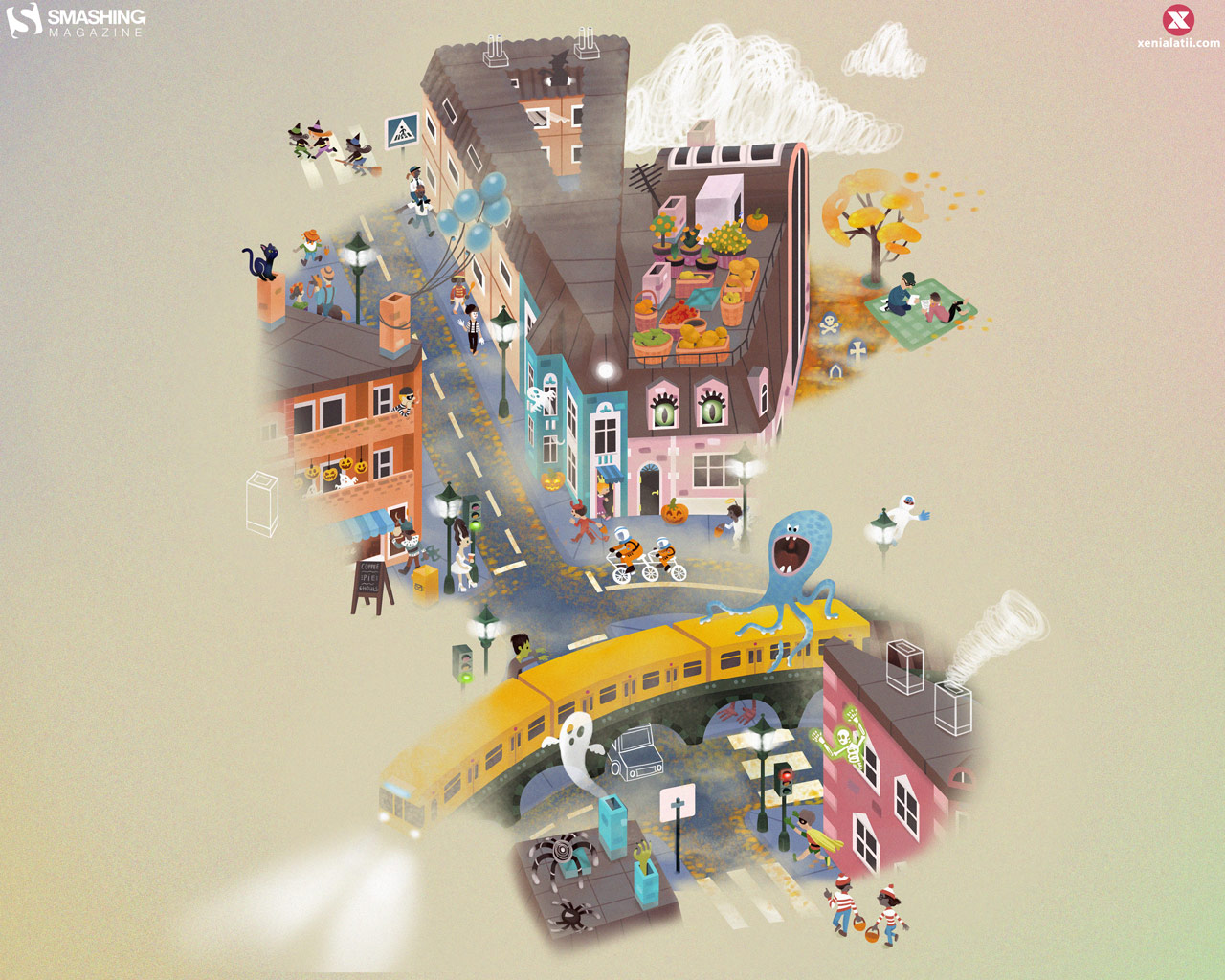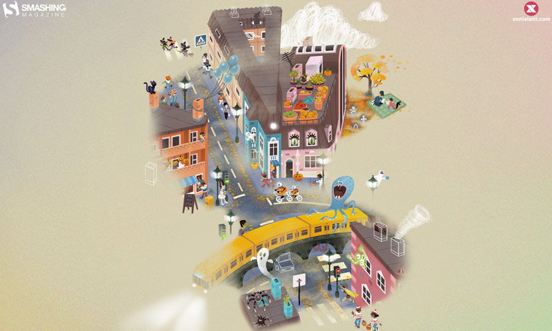 For this October edition, artists and designers from across the globe once again challenged their creative skills and designed wallpapers to spark your imagination. You find them compiled below, along with a selection of timeless October treasures from our wallpapers archives that are just too good to gather dust.