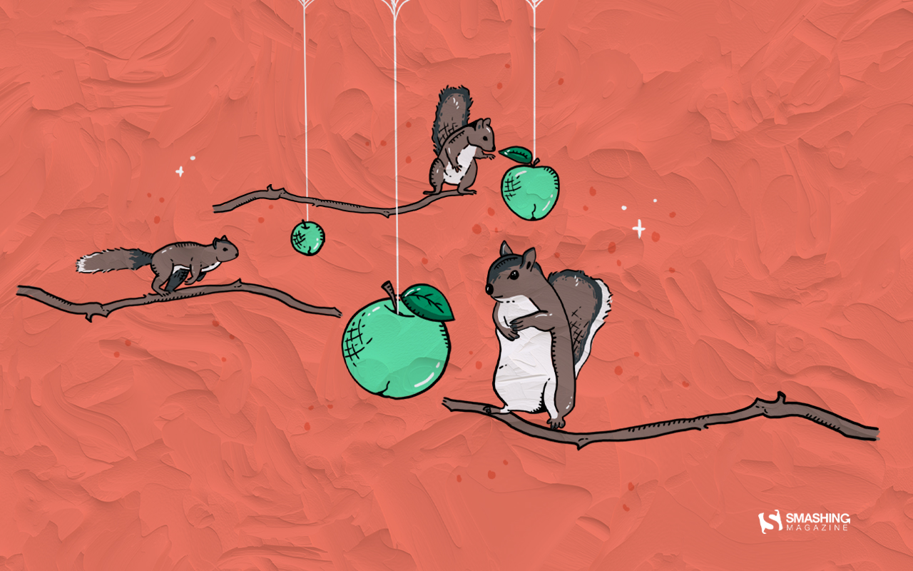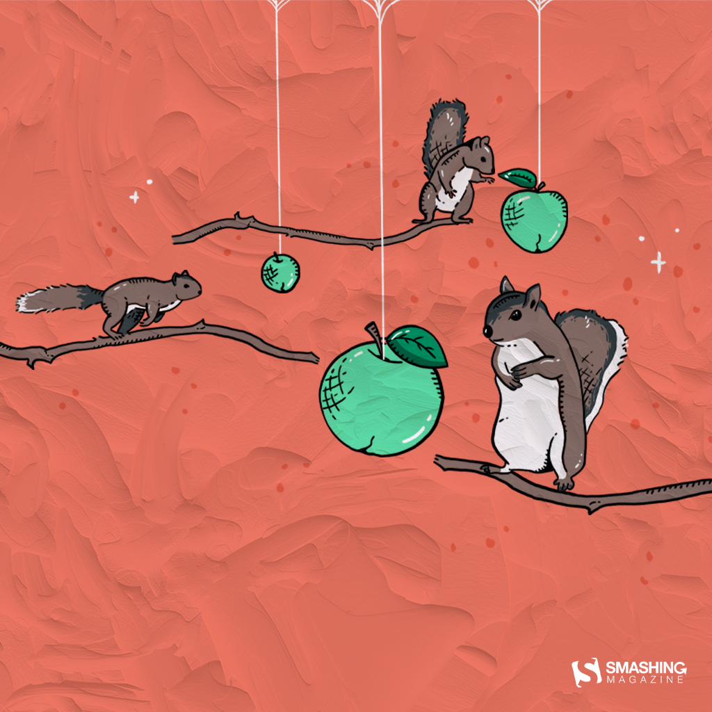 Did you know that squirrels don’t just eat nuts? They really like to eat fruit, too. Since apples are the seasonal fruit of October, I decided to combine both things into a beautiful image. — Designed by Erin Troch from Belgium.