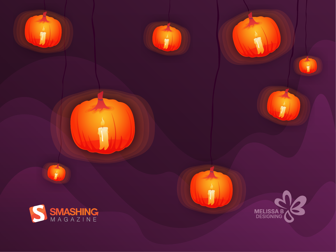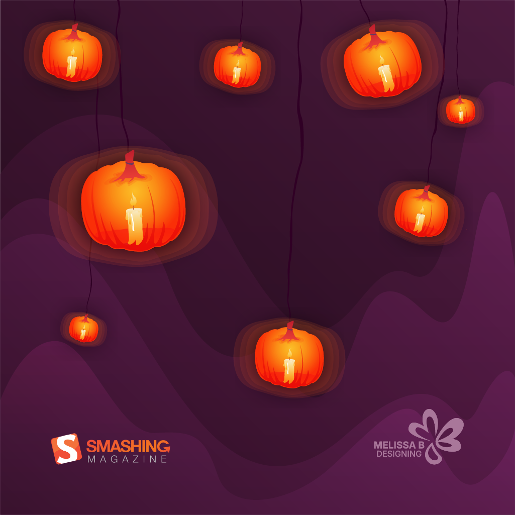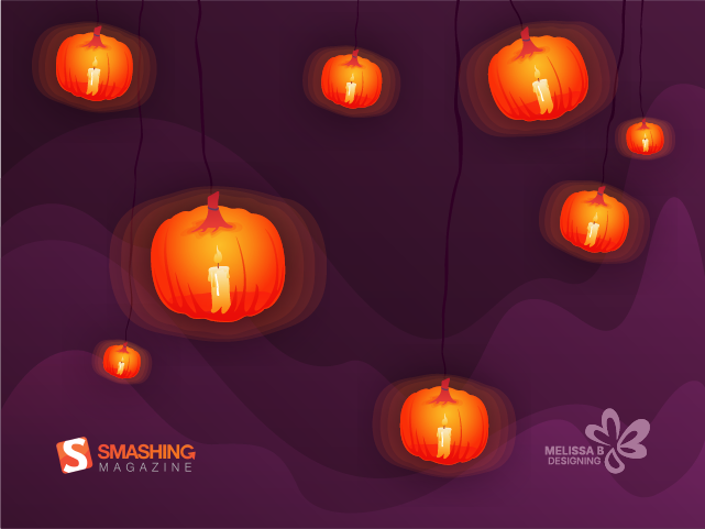 I was inspired by the classic orange and purple colors of October and Halloween, and wanted to combine those two themes to create a fun pumpkin lantern background. — Designed by Melissa Bostjancic from New Jersey, United States.