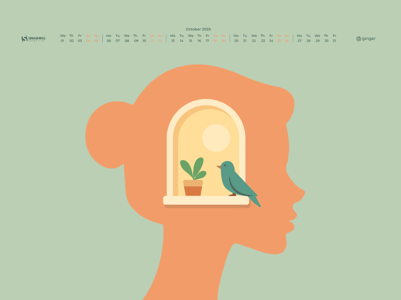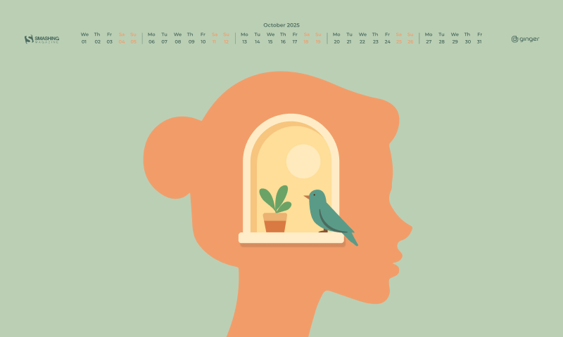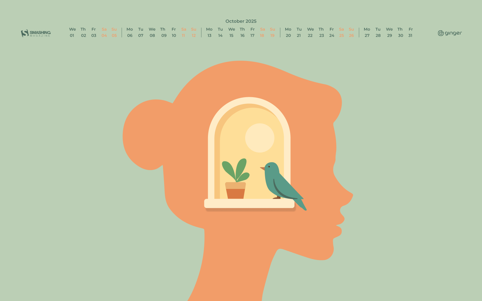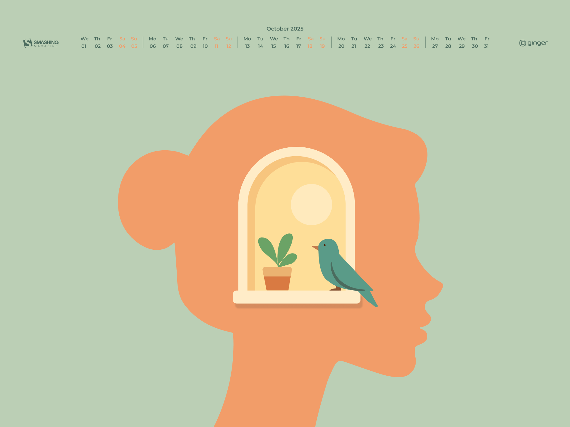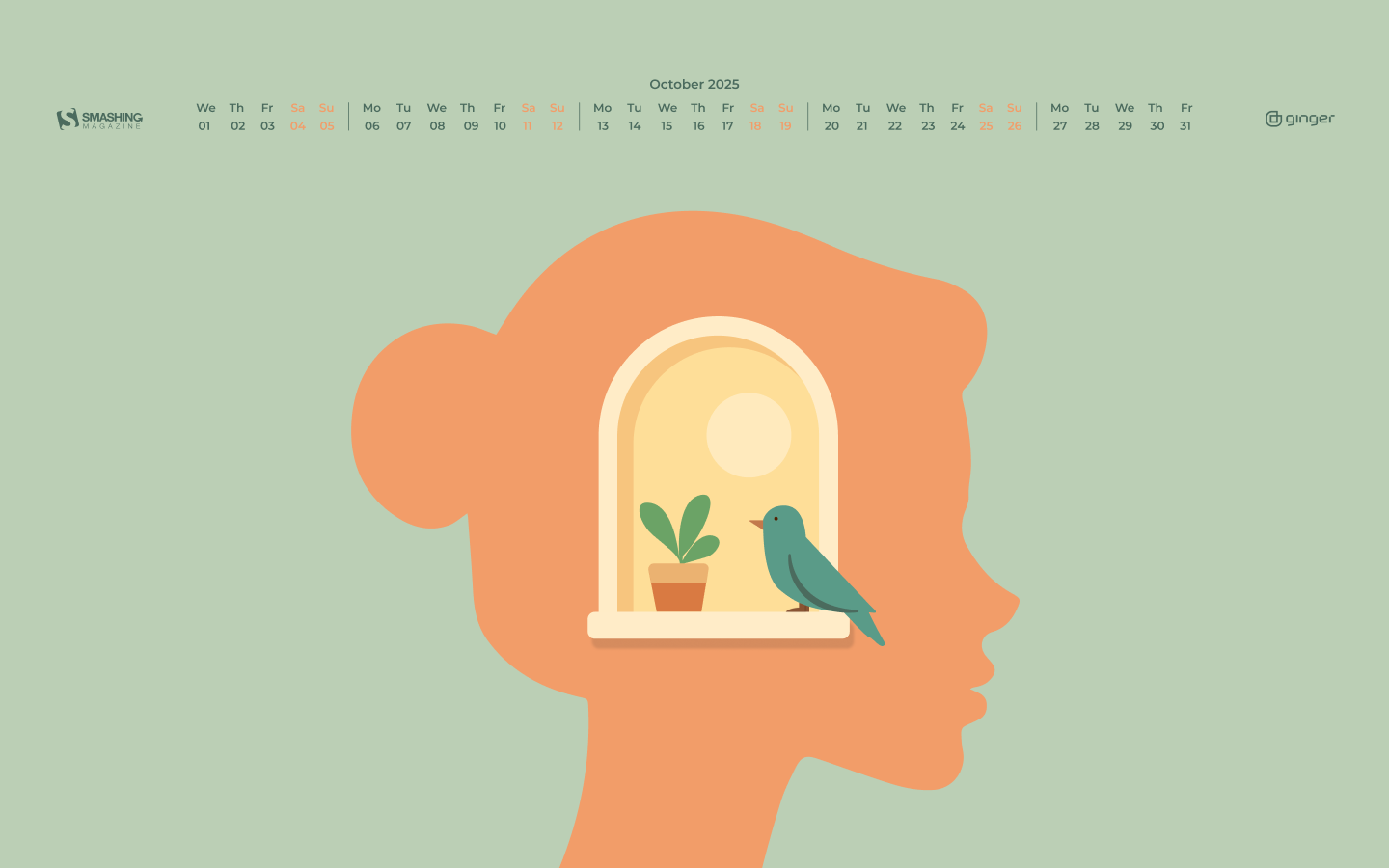 In October, we observe World Mental Health Day. The open window in the head symbolizes light and fresh thoughts, the plant represents quiet inner growth and resilience, and the bird brings freedom and connection with the world. Together, they create an image of a mind that breathes, grows, and remains open to new beginnings. — Designed by Ginger IT Solutions from Serbia.